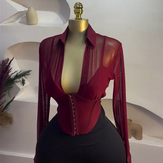 Collar Elastic Stitching High Waist Wide Blouses