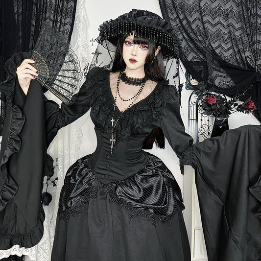 Women's Autumn High Waist Slim Lace Ruffled Skirts