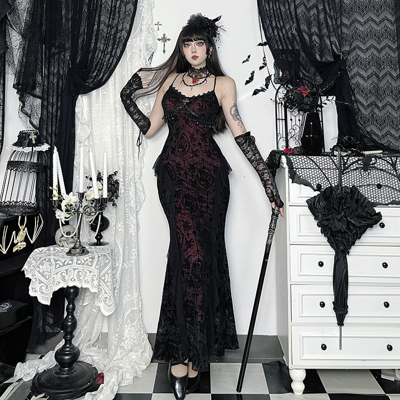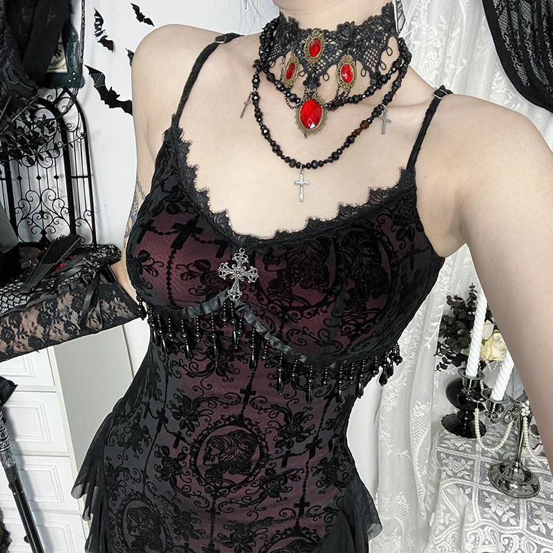 Autumn Cross Flocking Tassel Dress Asian Dresses