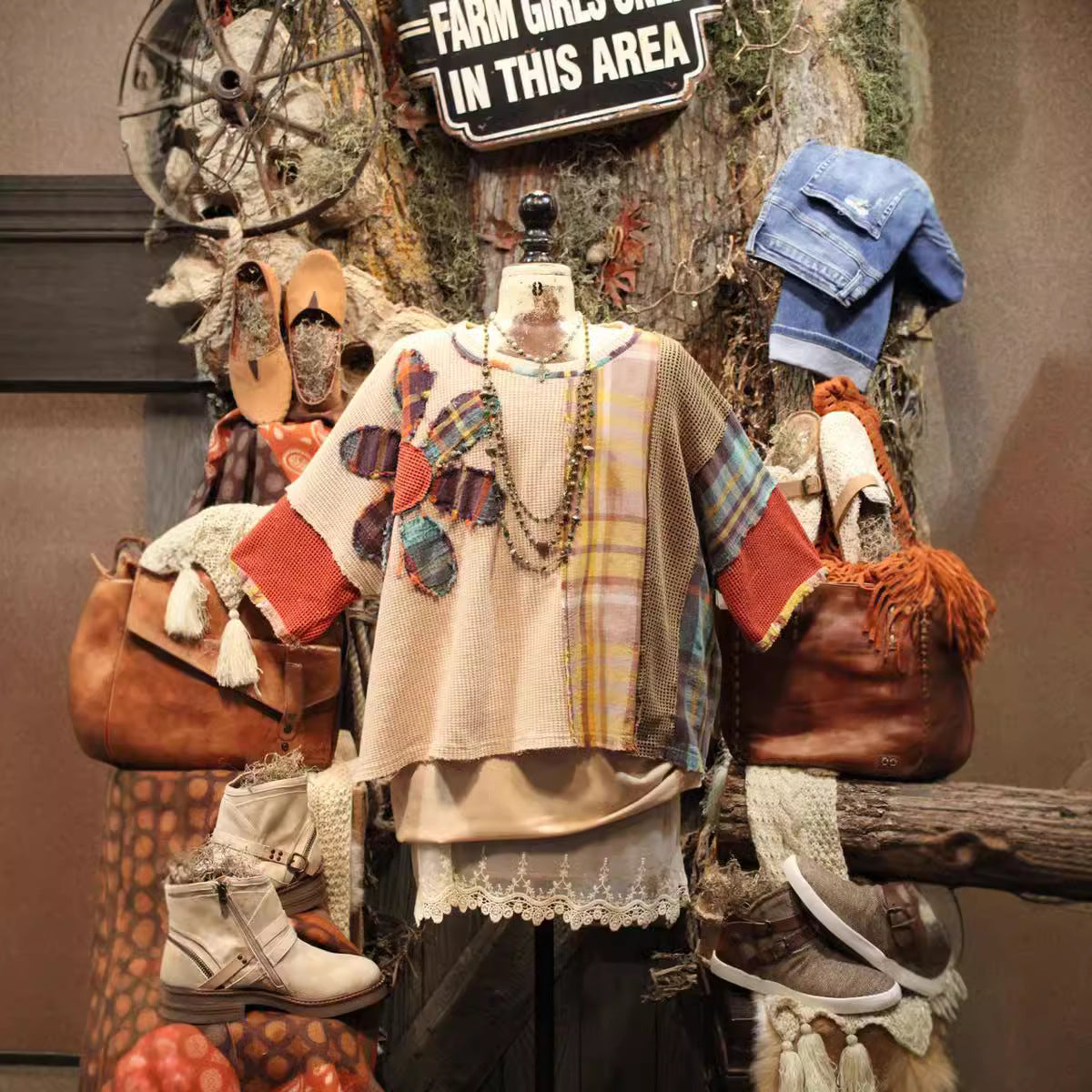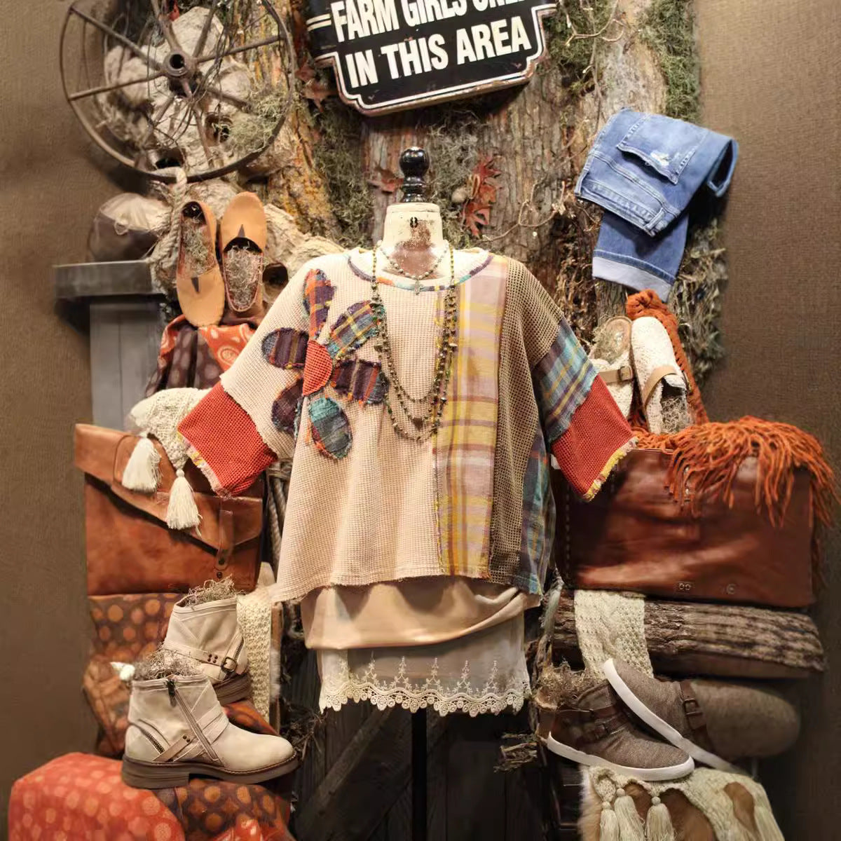 Block Printing Affixed Cloth Embroidered Round Sweaters