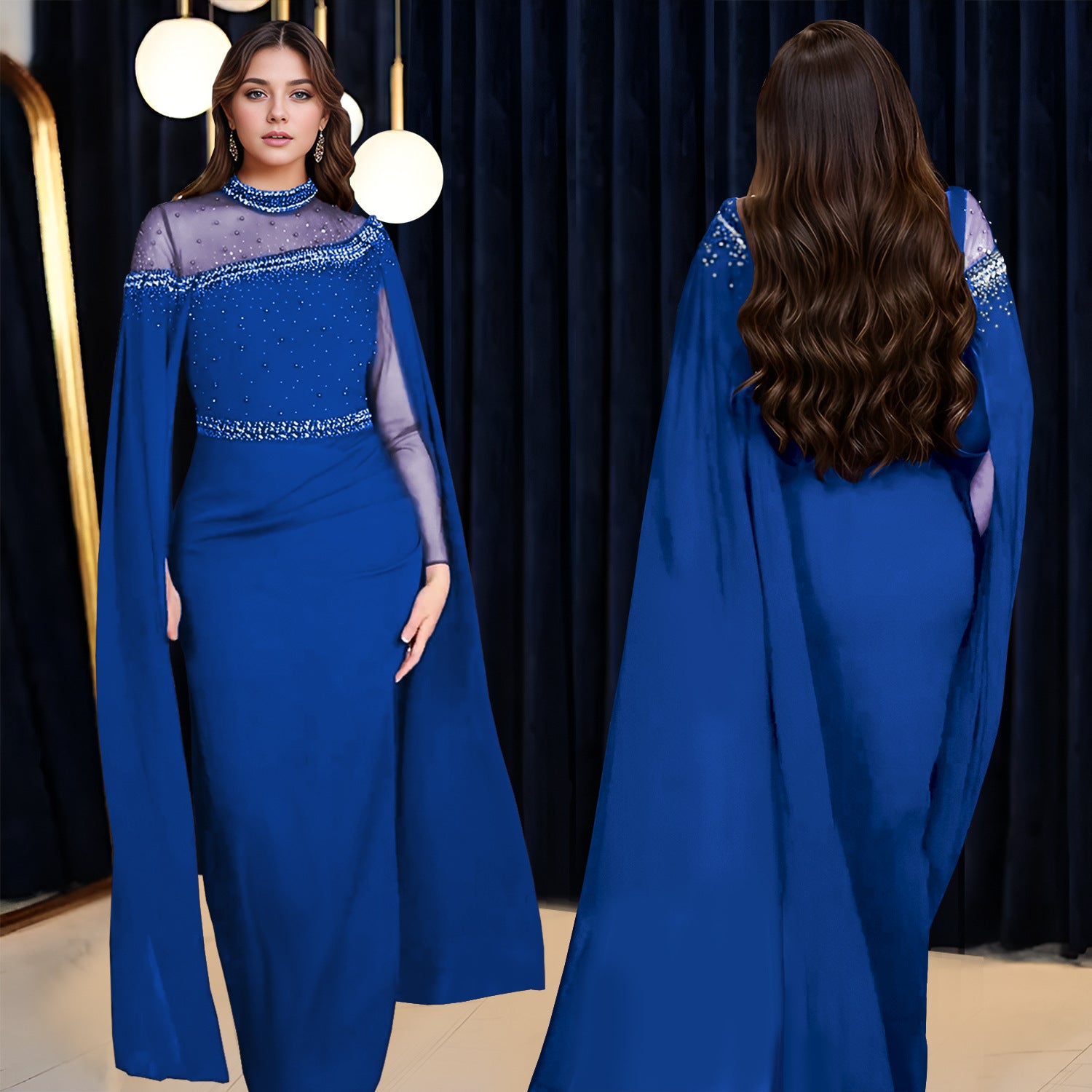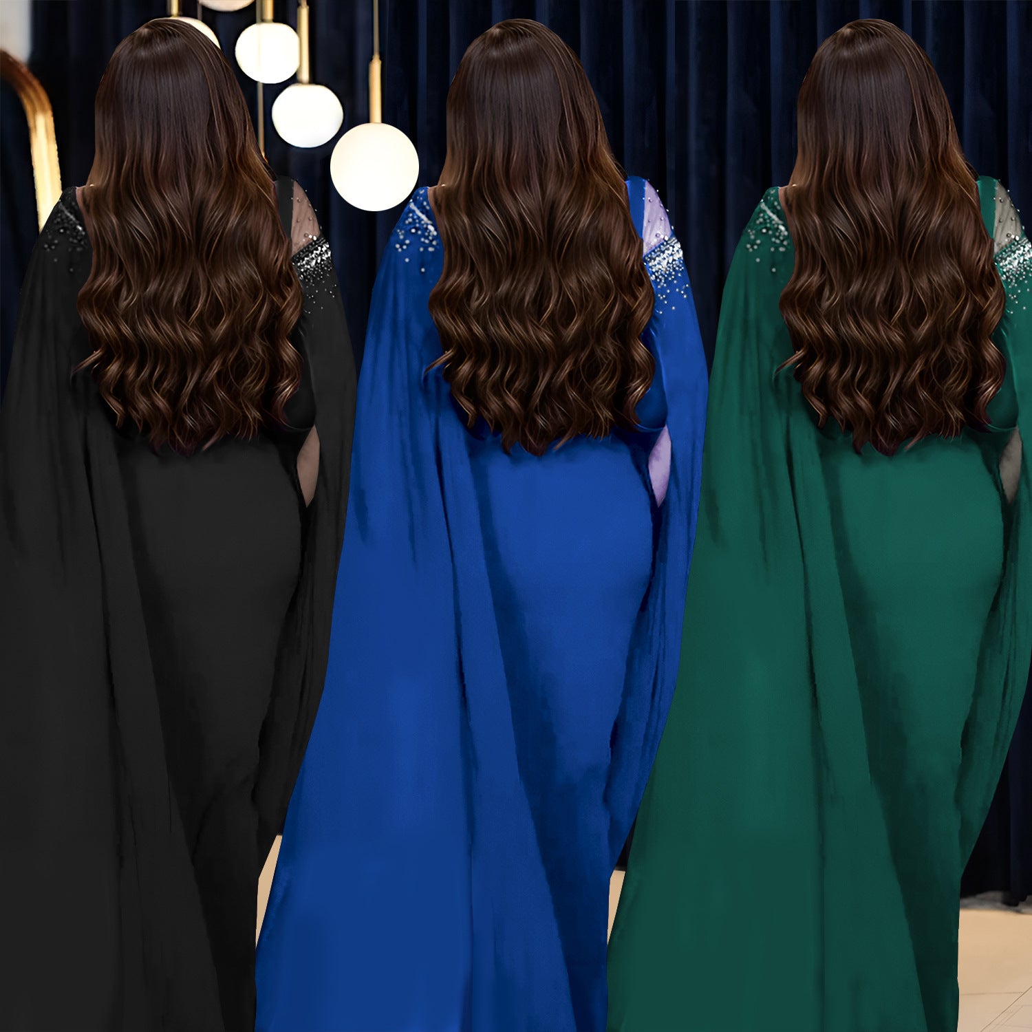 Chiffon Mesh Stitching Rhinestone Beaded Fashion Dresses