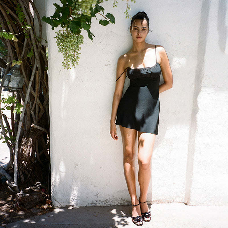 Color Silk Square Collar Slimming Sexy Suspenders Dresses