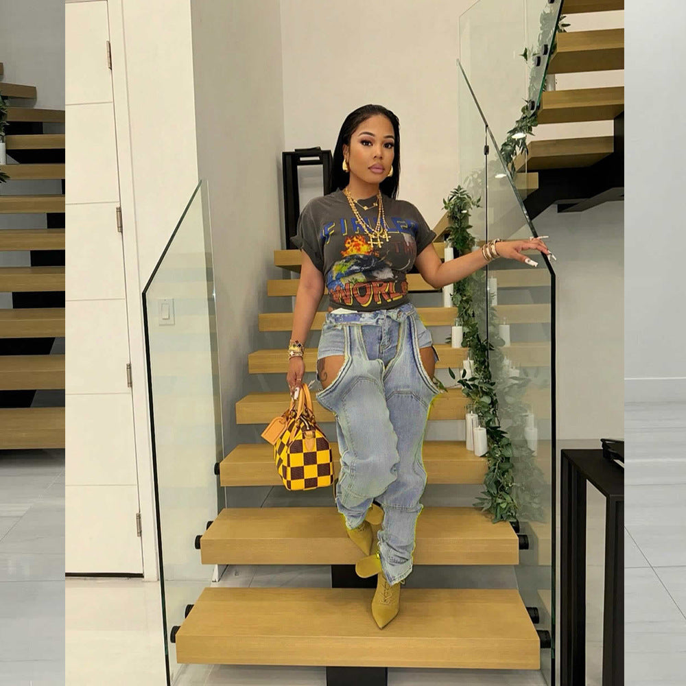 Creative Slouchy Cool Personality Two-piece Stitching Jeans