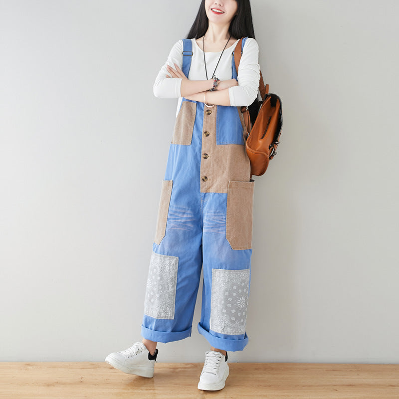 Denim Suspender Large Loose Artistic Patch Jeans
