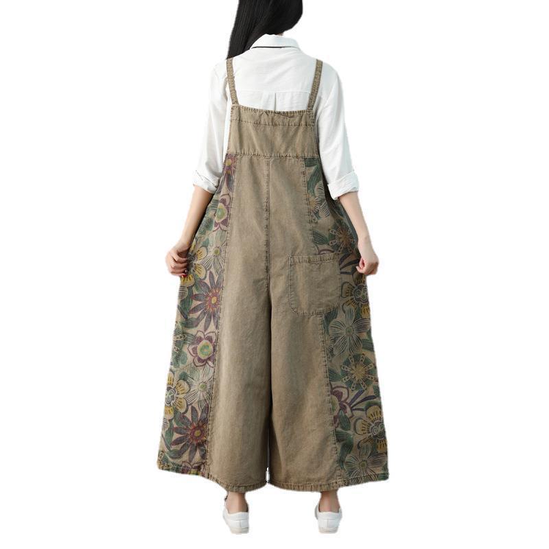 Distressed Printed Suspenders Retro Adjustable Color Jeans