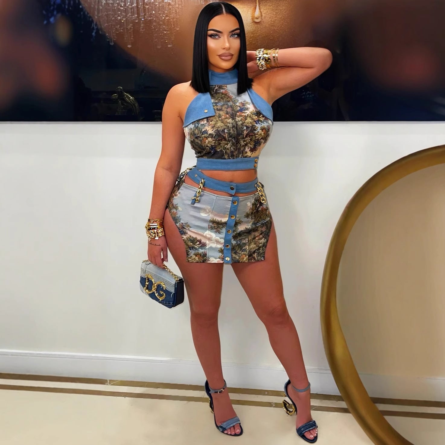 Elegant Sexy Print Metal Chain Decorative Sweaters