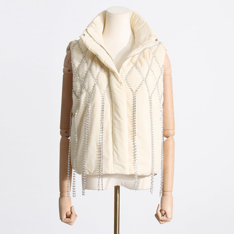 Handmade Rhinestone Waistcoat Autumn Style Loose-fitting Diamond Vests