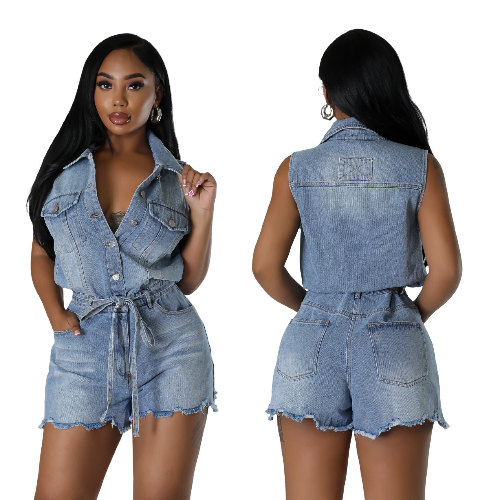 High Elastic Sleeve Loose Wash Denim Jumpsuits