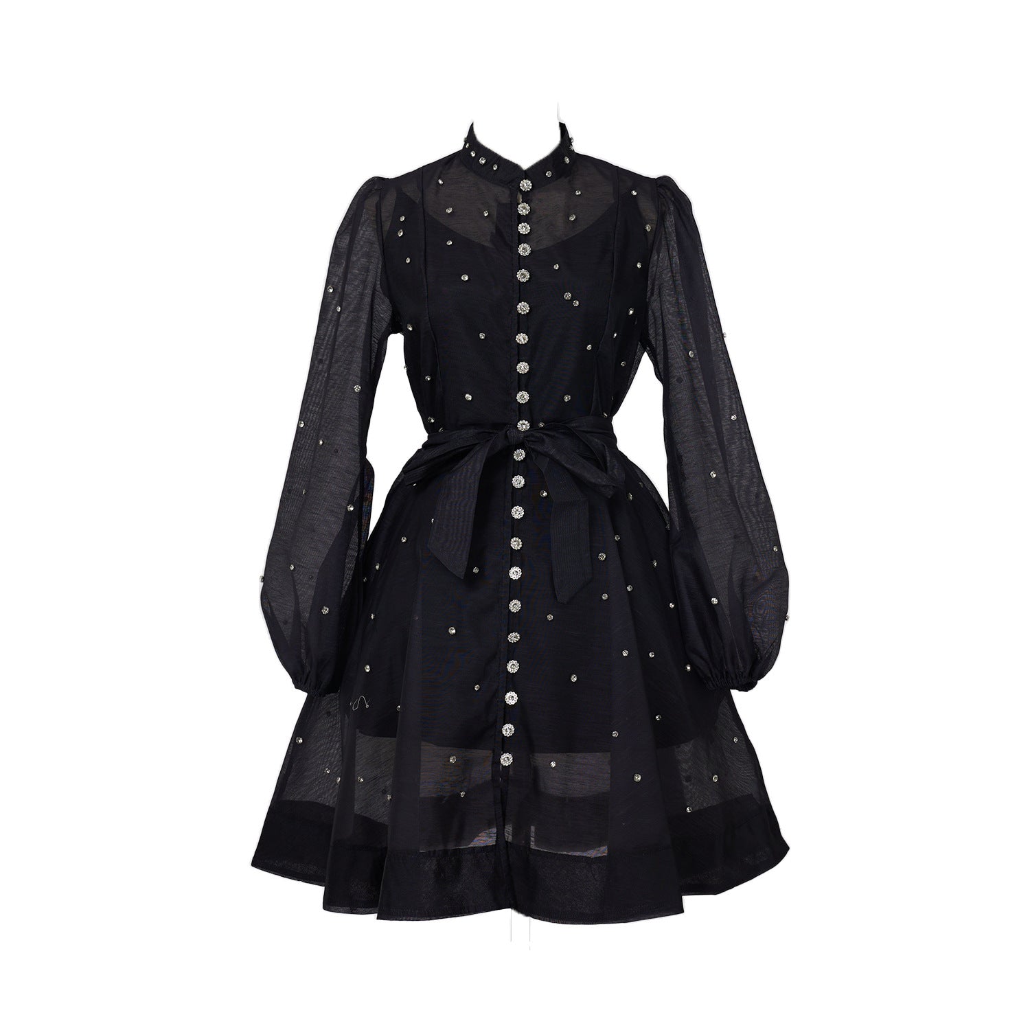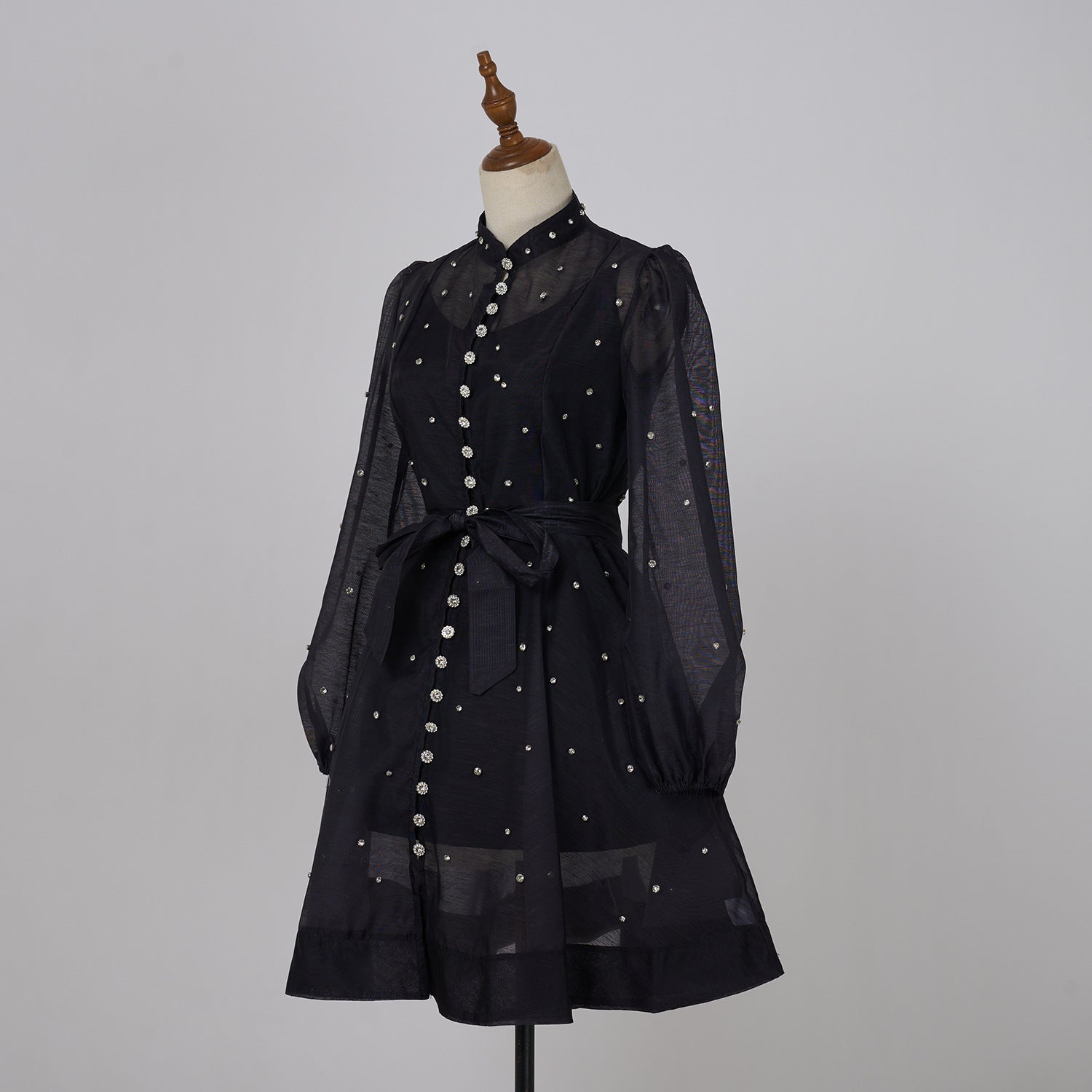Lantern Sleeve Single-breasted Waist Slimming Large Hem Dresses