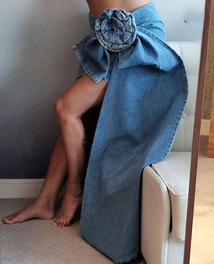 Layered Streamers Rose Handmade Flower Denim Skirts