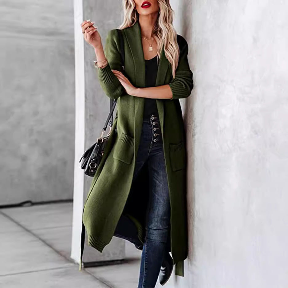 Lazy Loose Mid-length Pocket Knitted Belt Knitwear