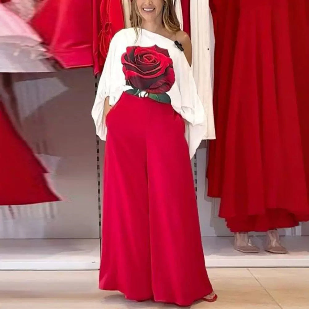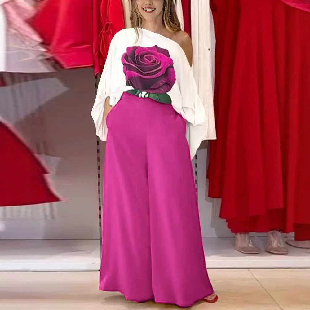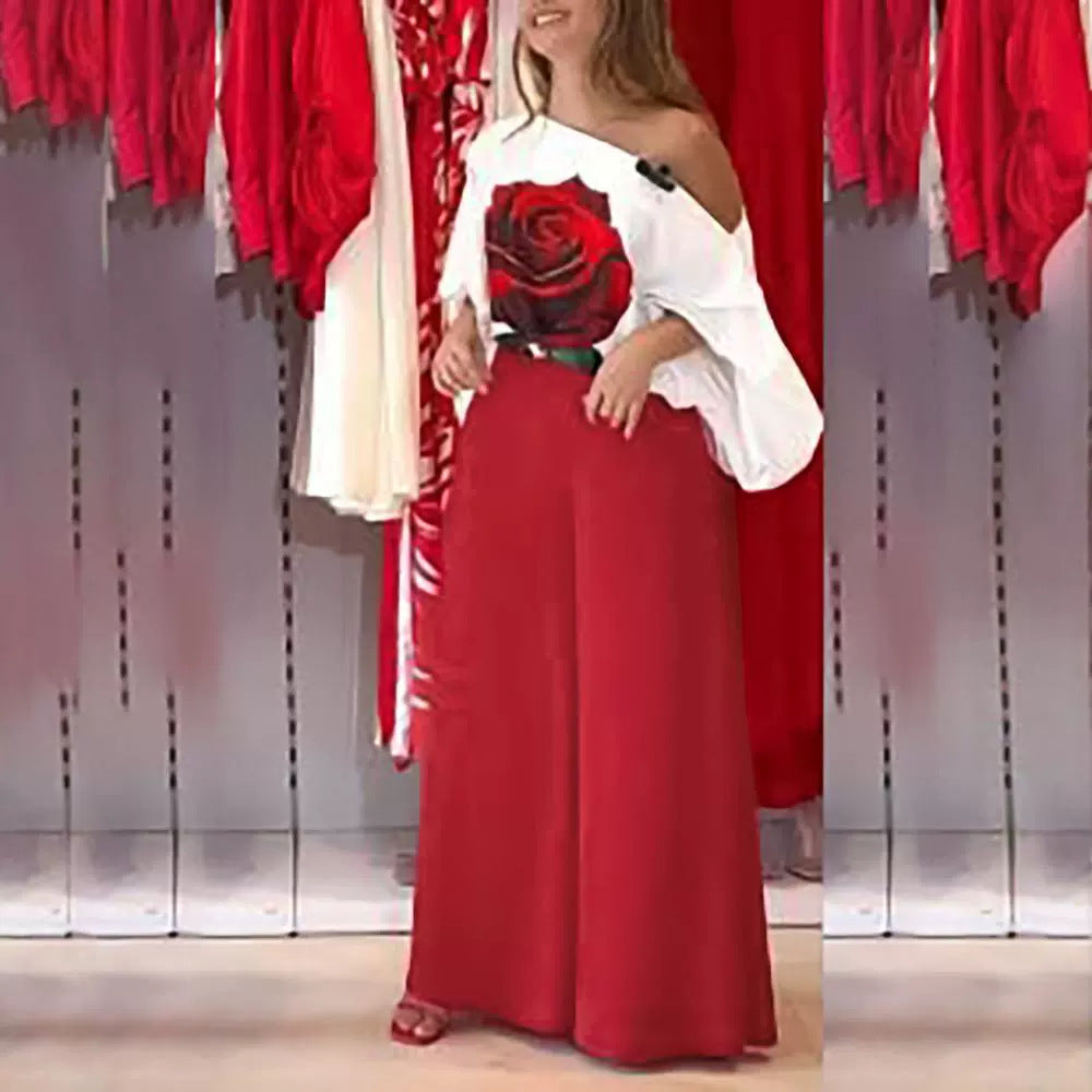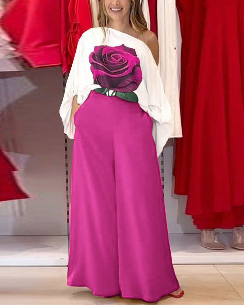 Pattern Lantern Sleeve Loose Off Shoulder Blouses