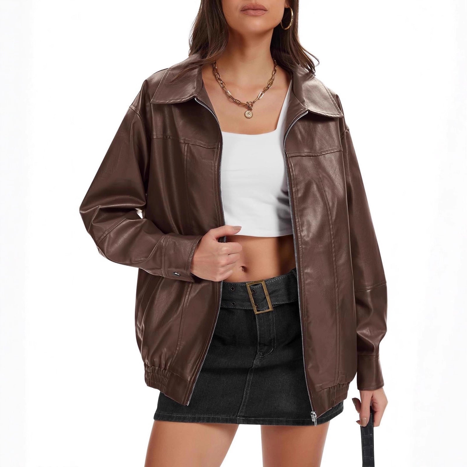Pocket Loose Long Sleeve Leather Cool Jackets