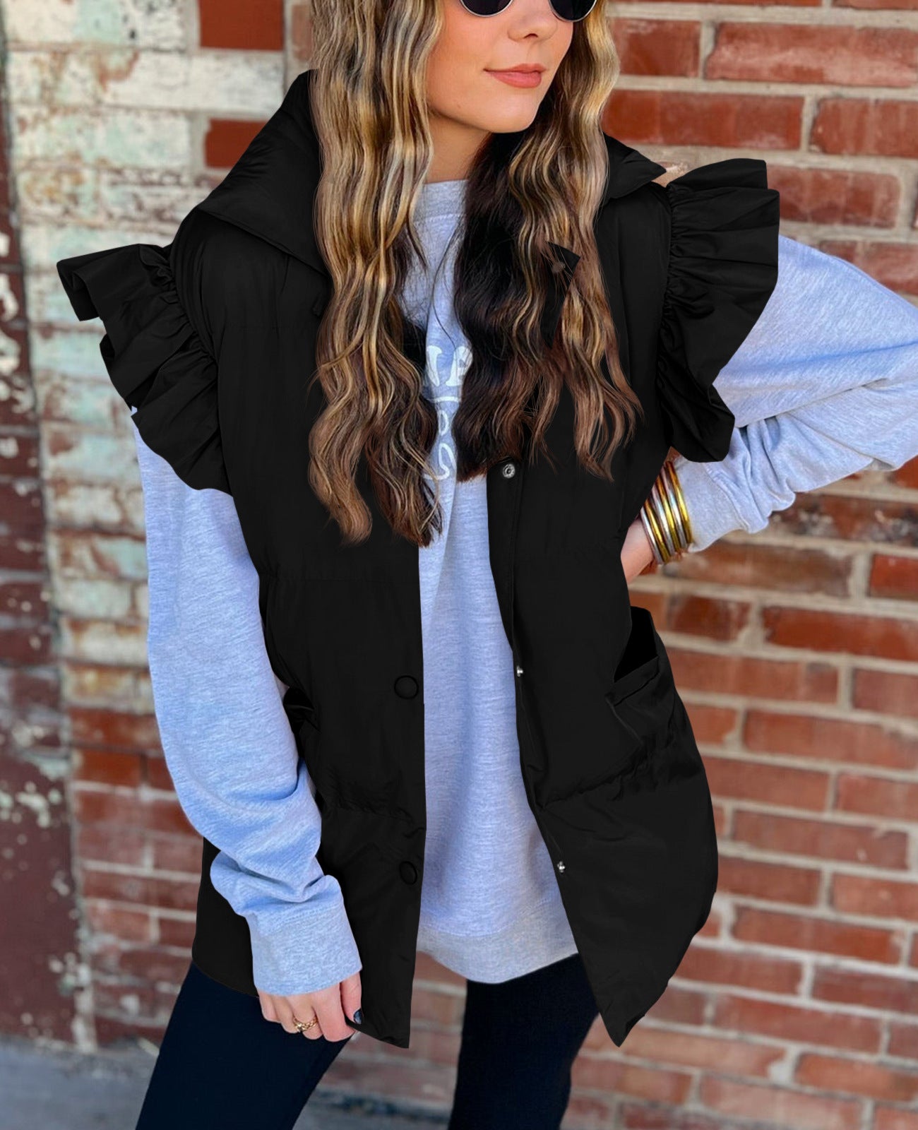 Pockets Flying Sleeves Elegant Stand Collar Vests