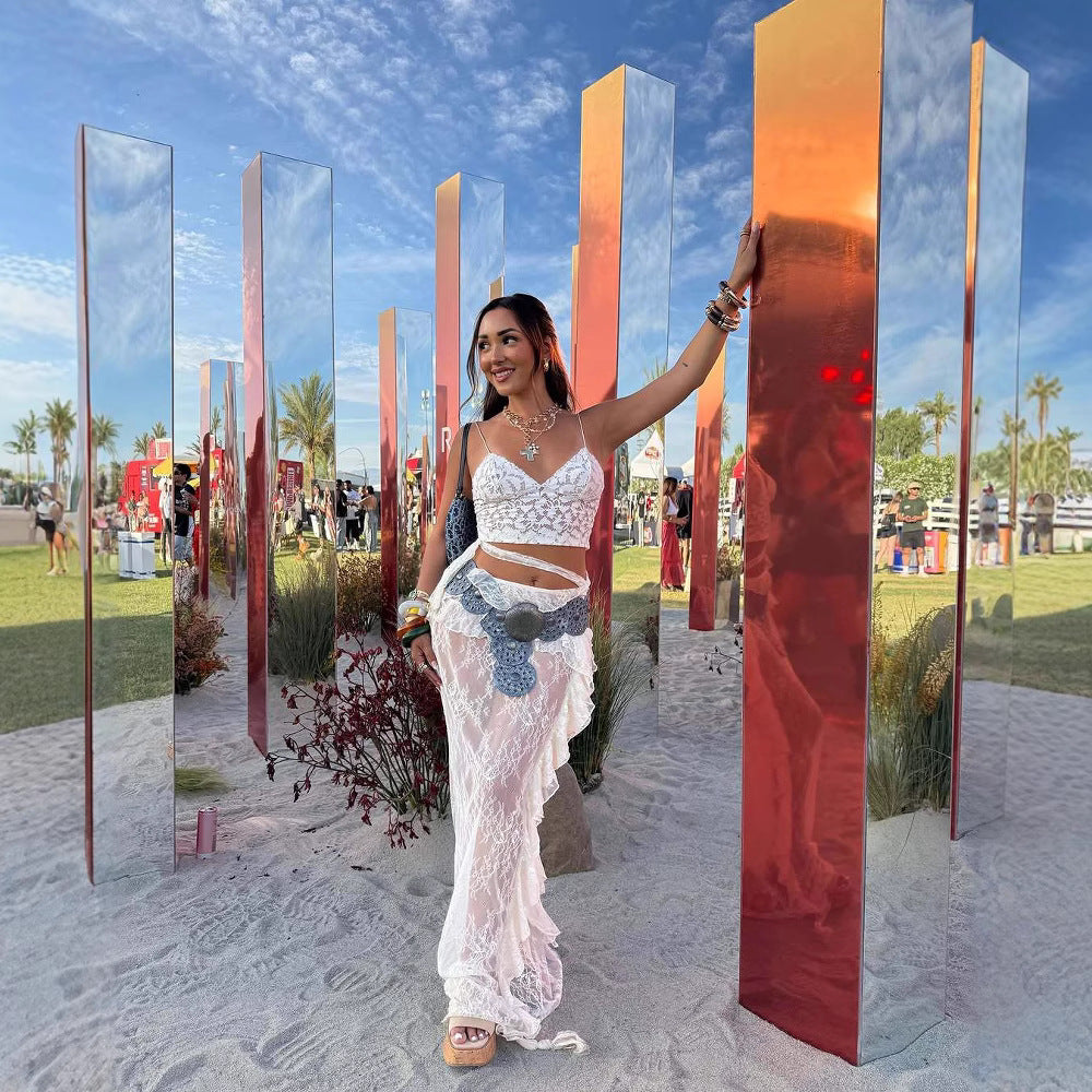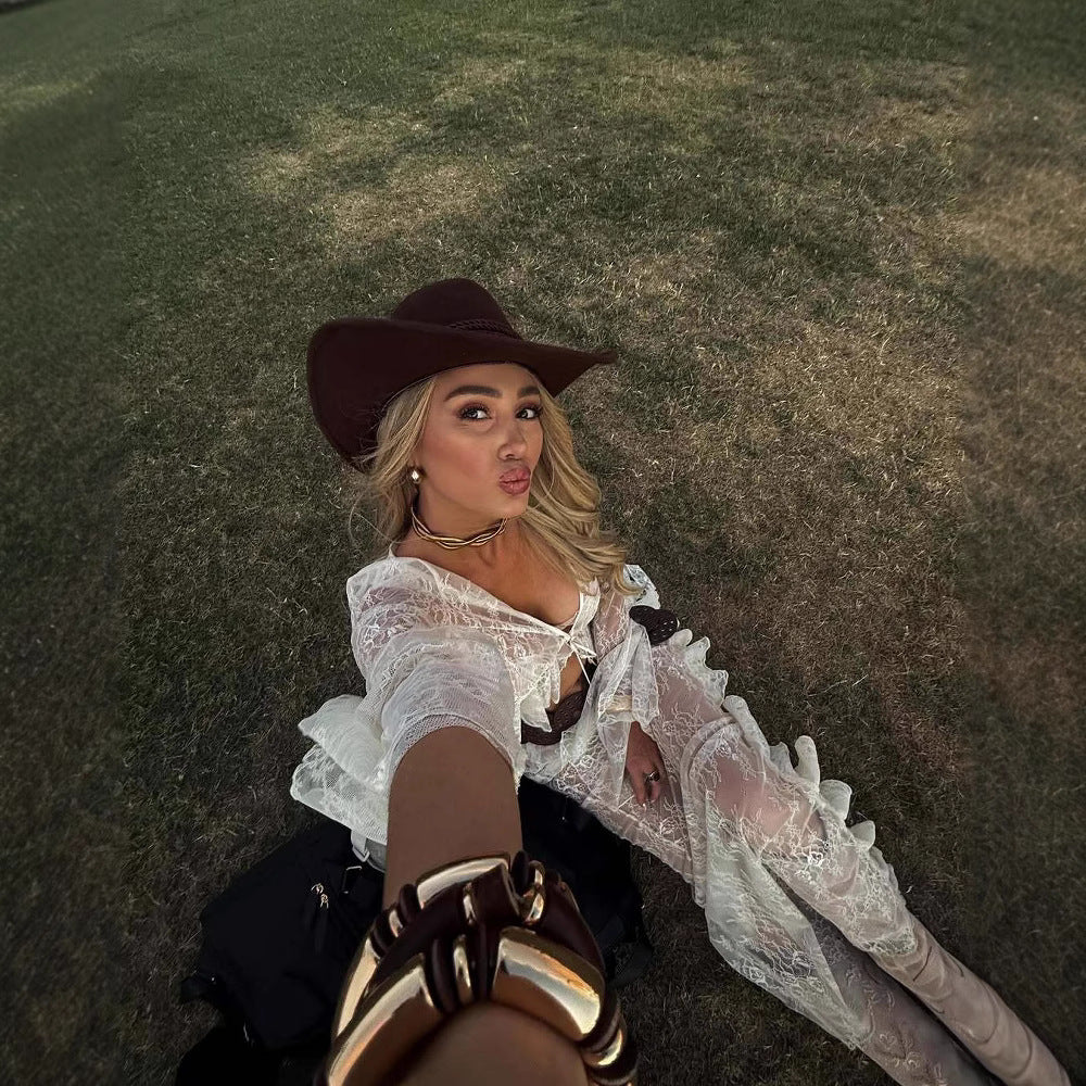 Ruffled Bell Sleeve Lace Navel Sexy Blouses