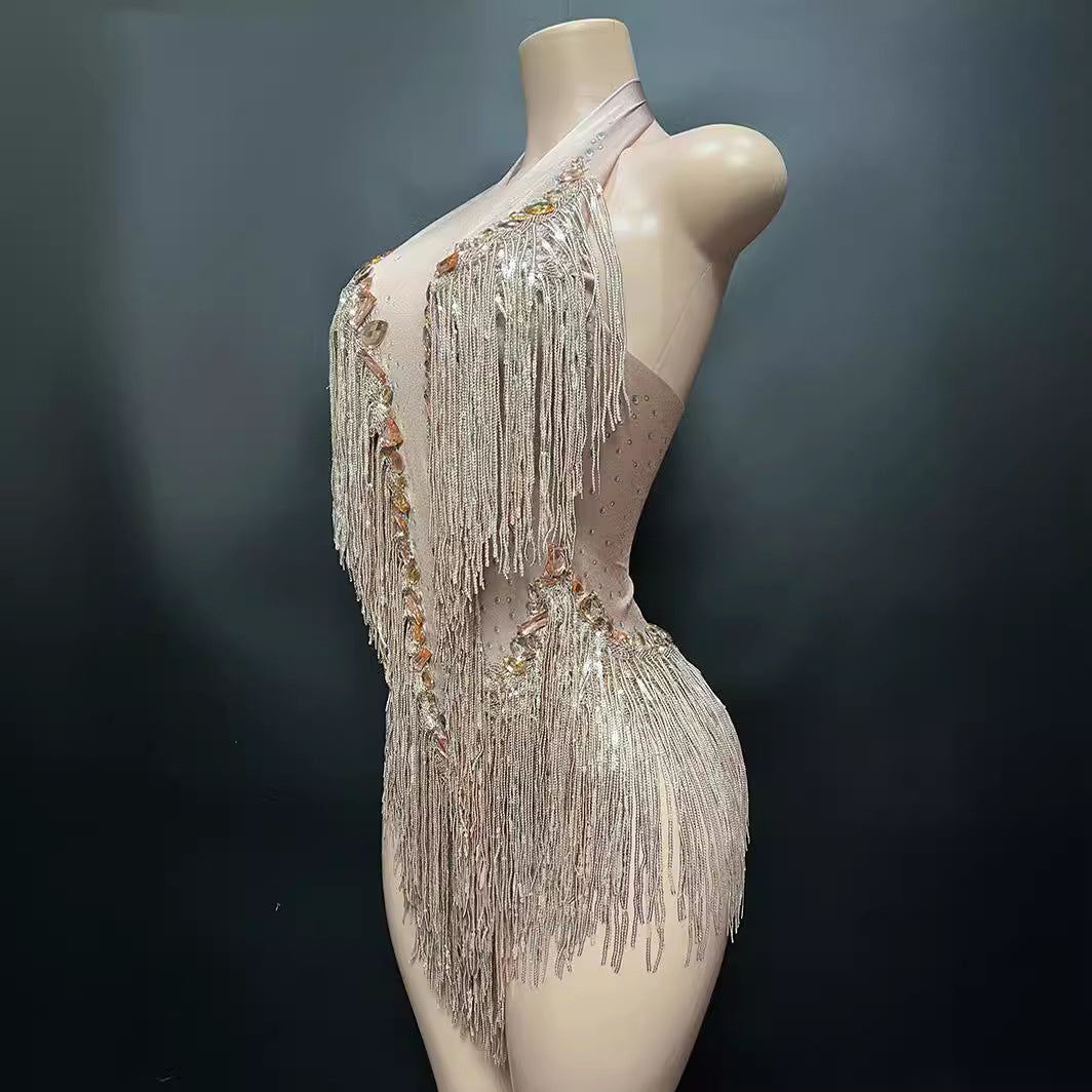 Shining Diamond Tassel Round Neck Elegant Jumpsuits