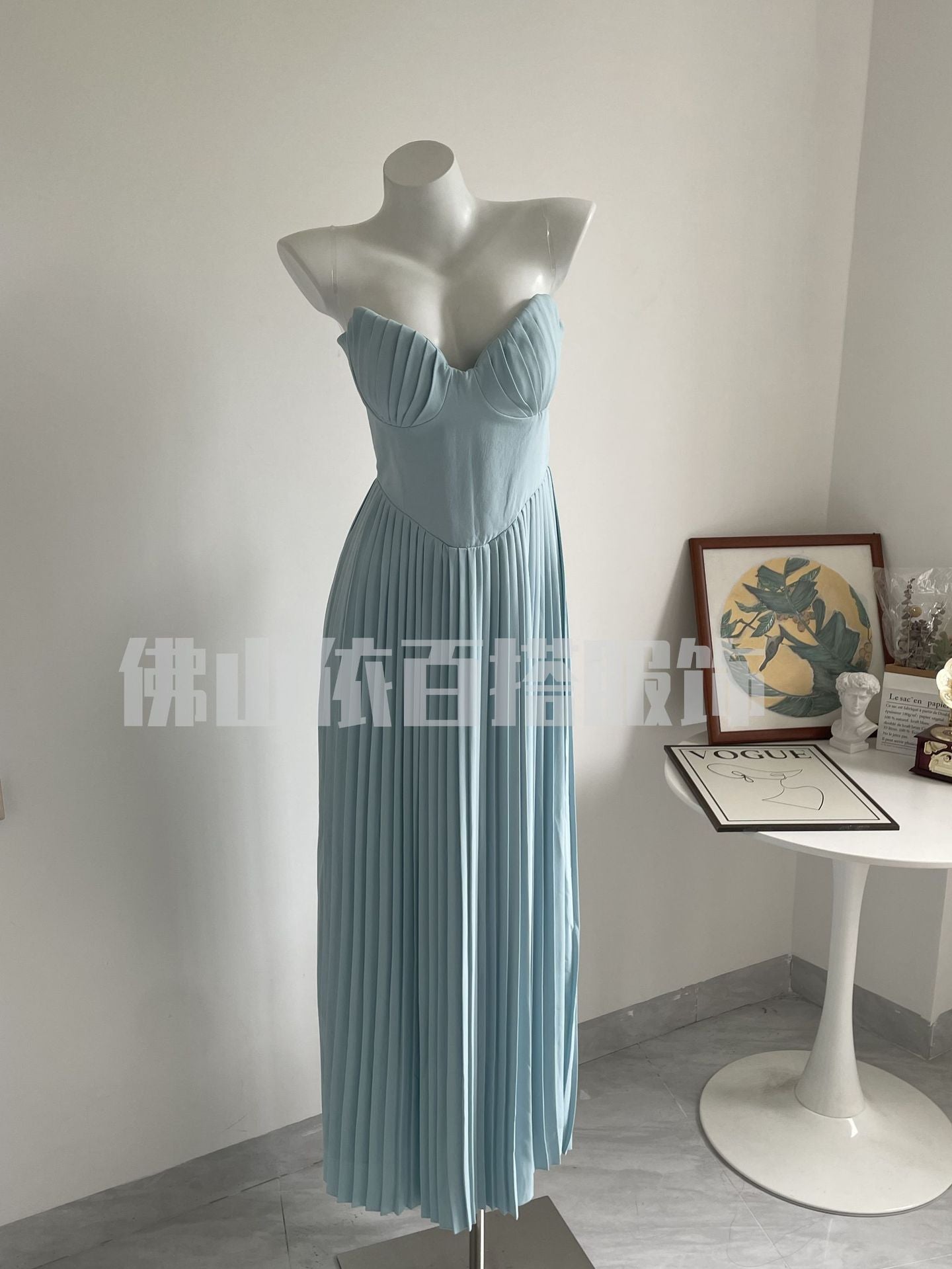 Sky Blue Elegant Pleated Tube Slimming Dresses