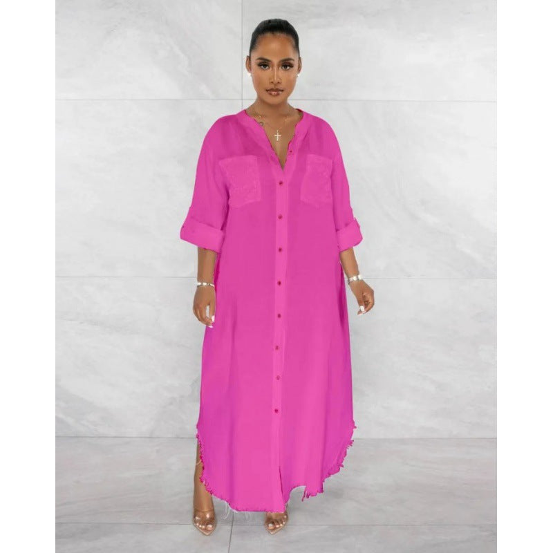Solid Color Long Sleeves Single-breasted Half-open Blouses