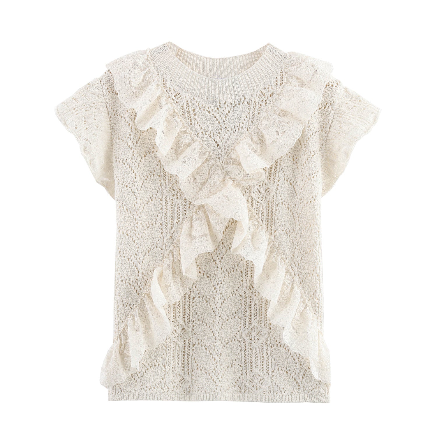 Spring Laminated Decoration Jacquard Mesh Knitted Sweaters