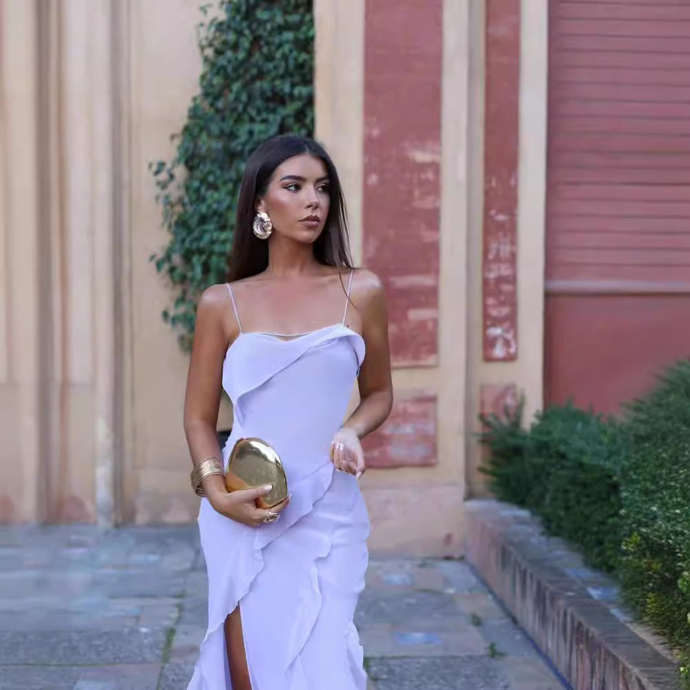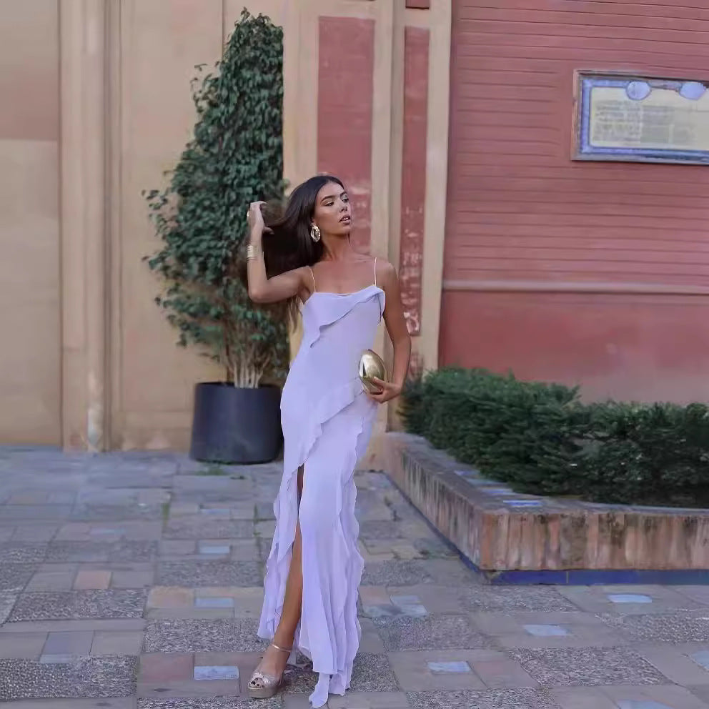 Spring Slit Ruffled Sexy Suspender Dress Dresses