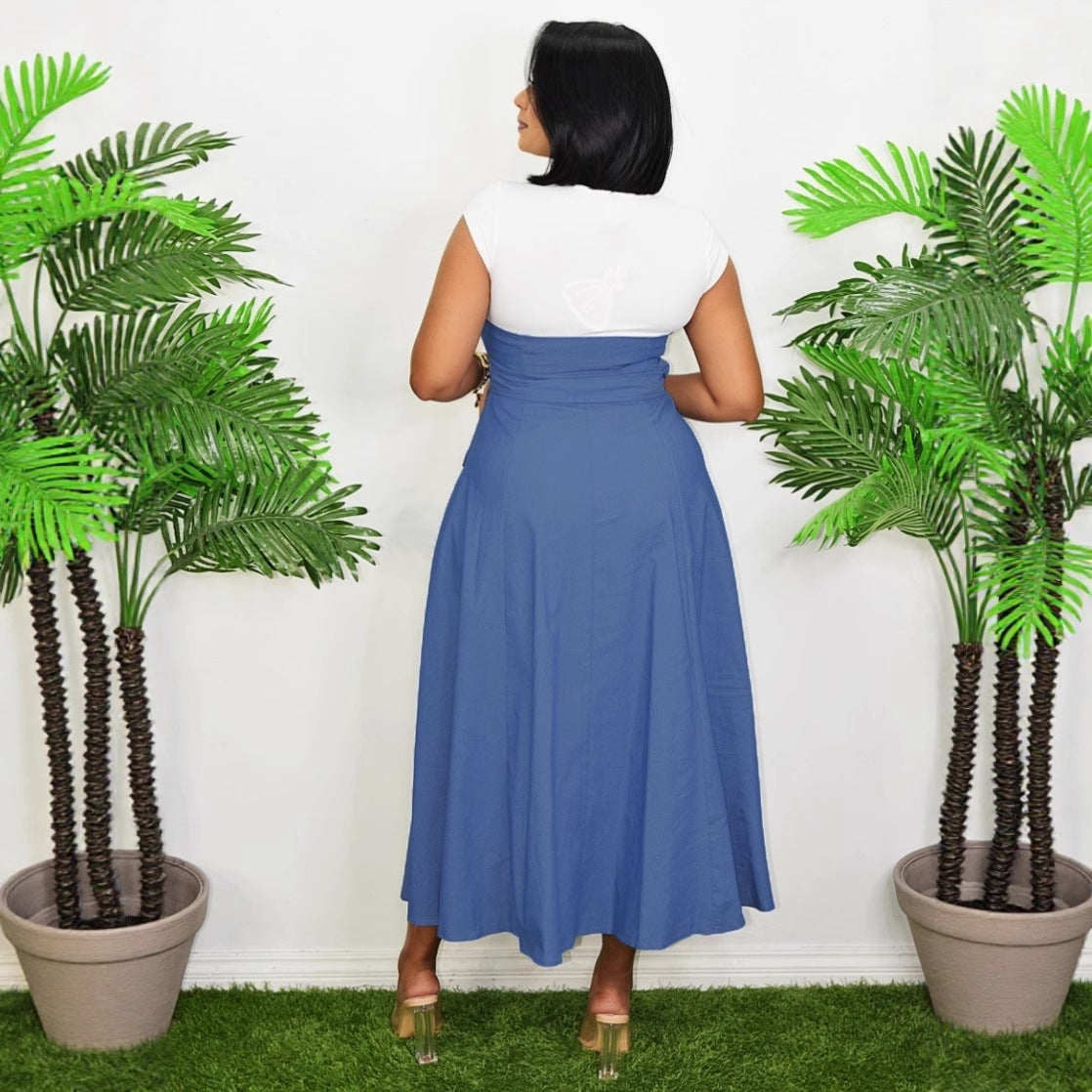 Stitching Contrast Color Overalls Pocket Hemline Dresses