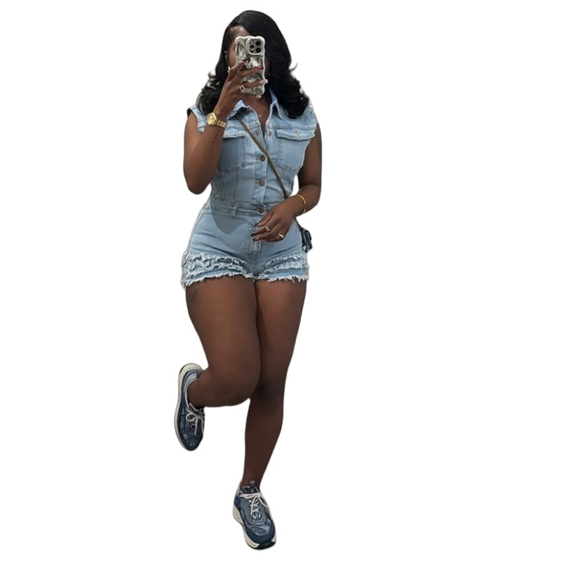 Stretch Cowboy Siamese Denim Sleeveless Slim Jumpsuits