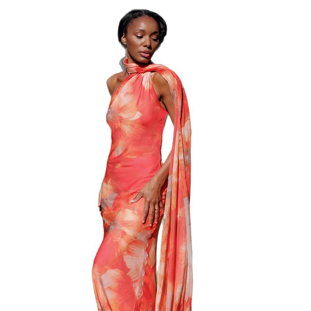Summer Elegance Sleeveless Halter Ribbon Long Dresses