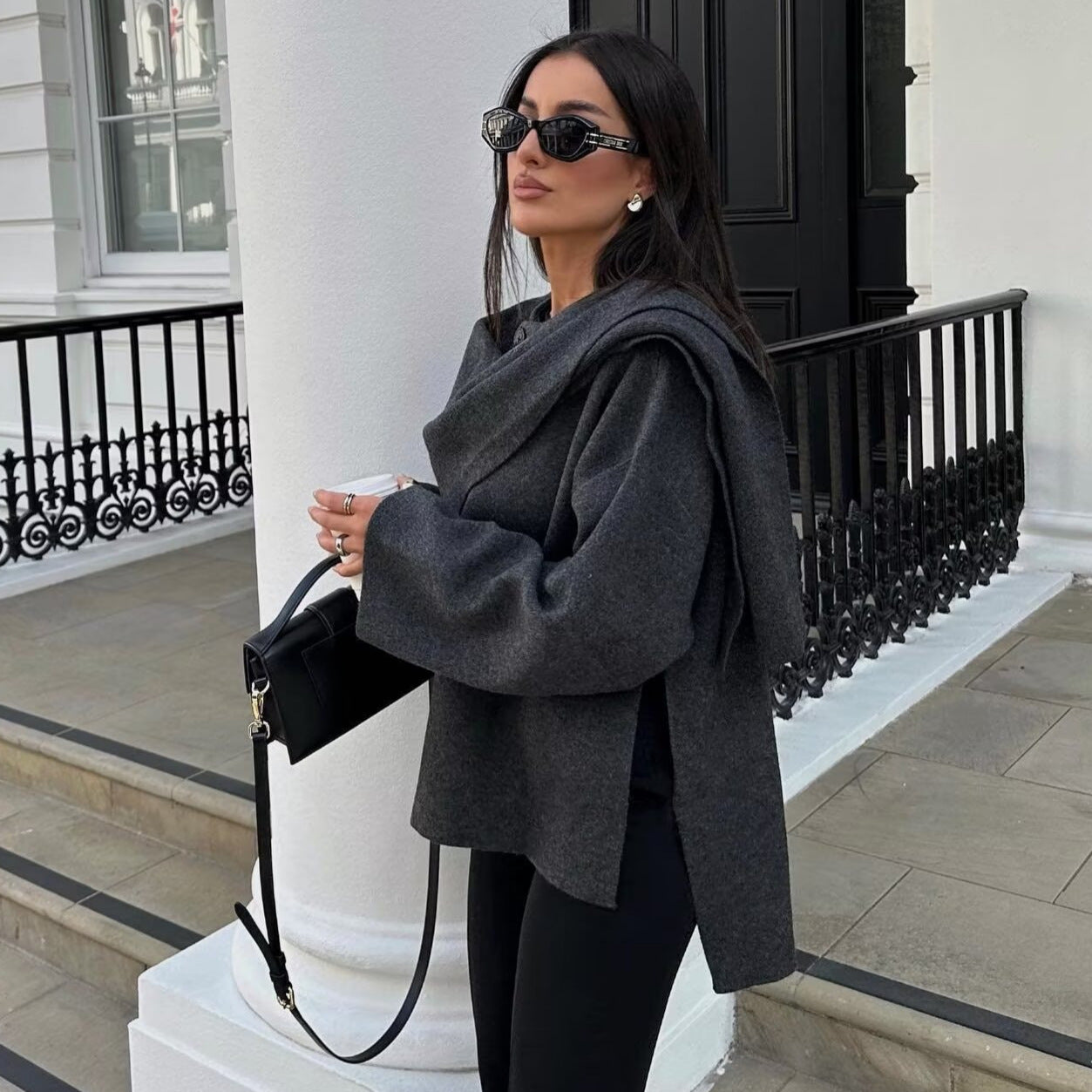 Women's Asymmetric Short-sleeved Scarf Knitted Overcoat Fashionable Knitwear
