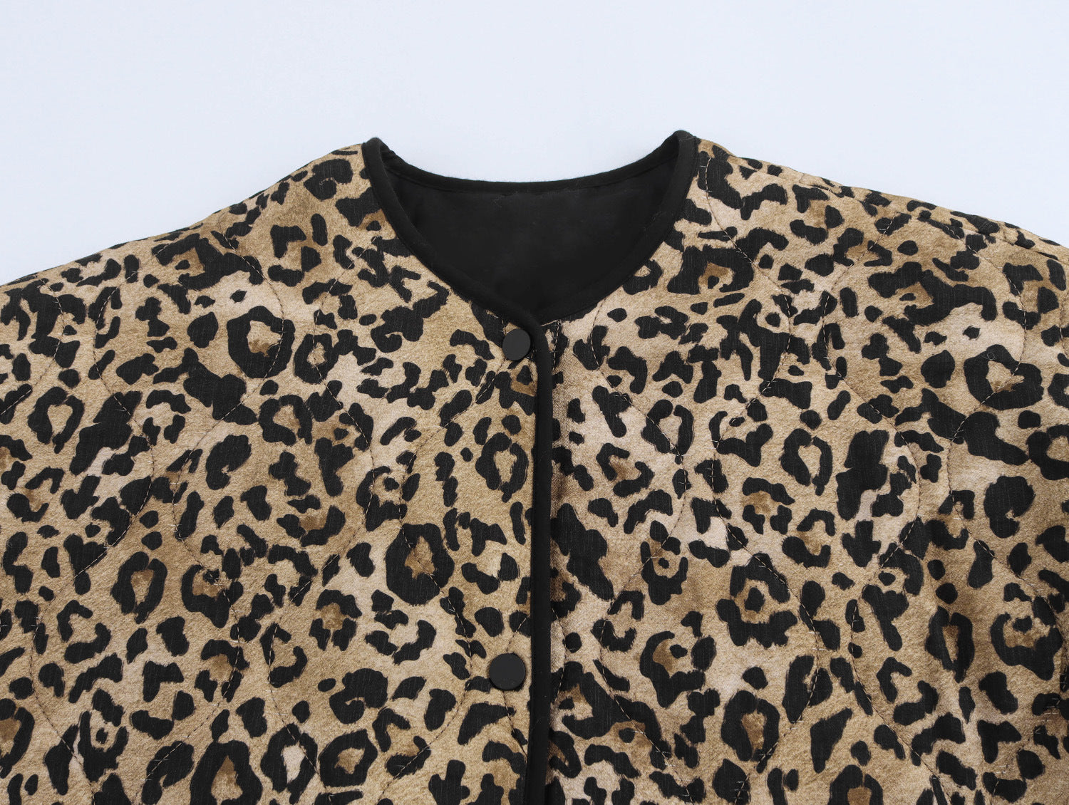 Women's Autumn Organza Leopard Print Round Neck Jackets