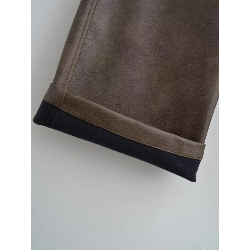 Women's Autumn Retro Hipster Leather Korean Protein Casual Loose Pants