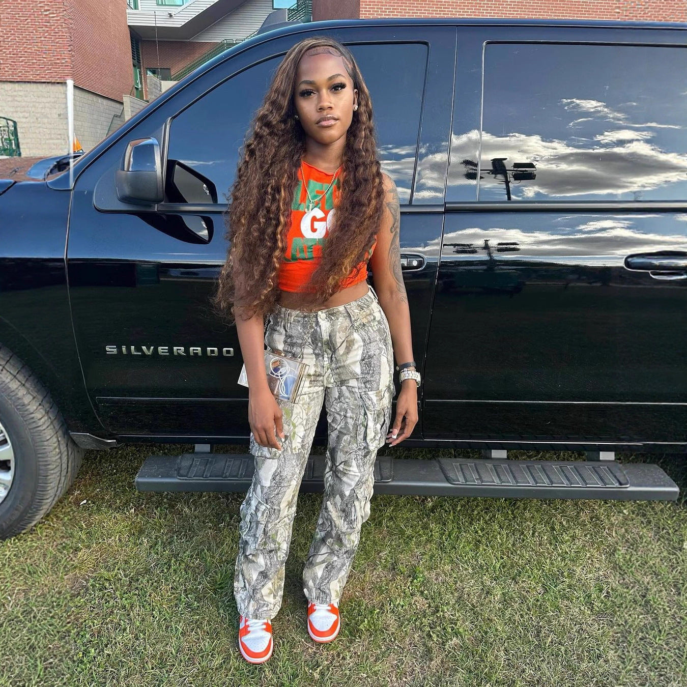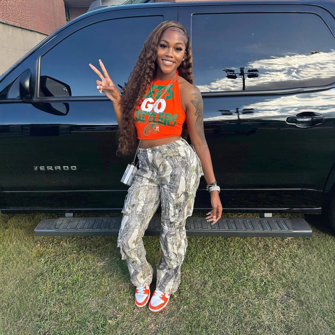 Women's Autumn Stitching High Waist Camouflage Pocket Pants