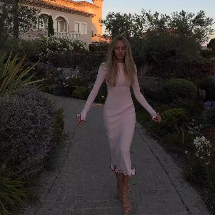 Women's Backless Flared Sleeve Ruffled Knitted Dress Sexy Dresses