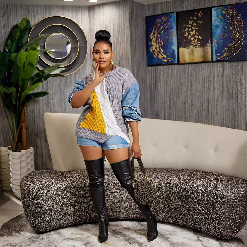 Women's Beautiful Stylish Denim Knitted Patchwork Blazers