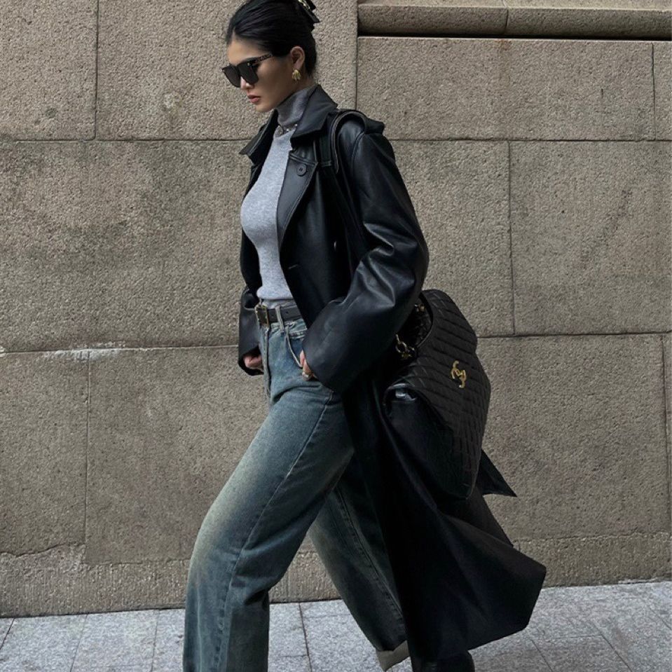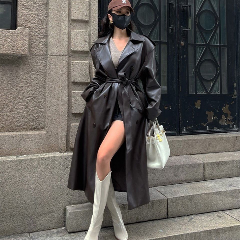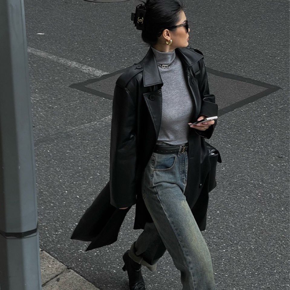 Women's Black Brown Retro Mid-length Leather High-grade Jackets