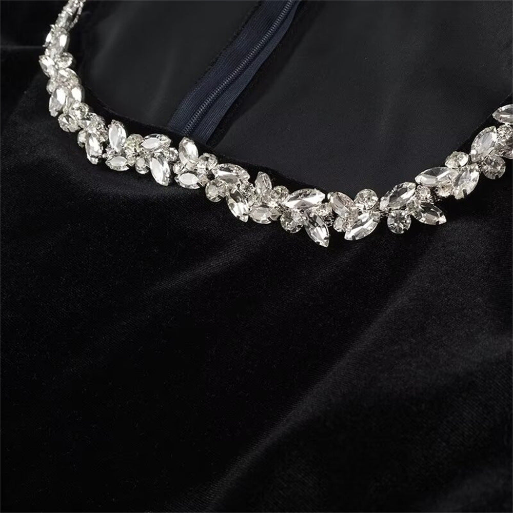 Women's Black Veet Slim Fit Diamond Fashion Long Sleeve Dresses