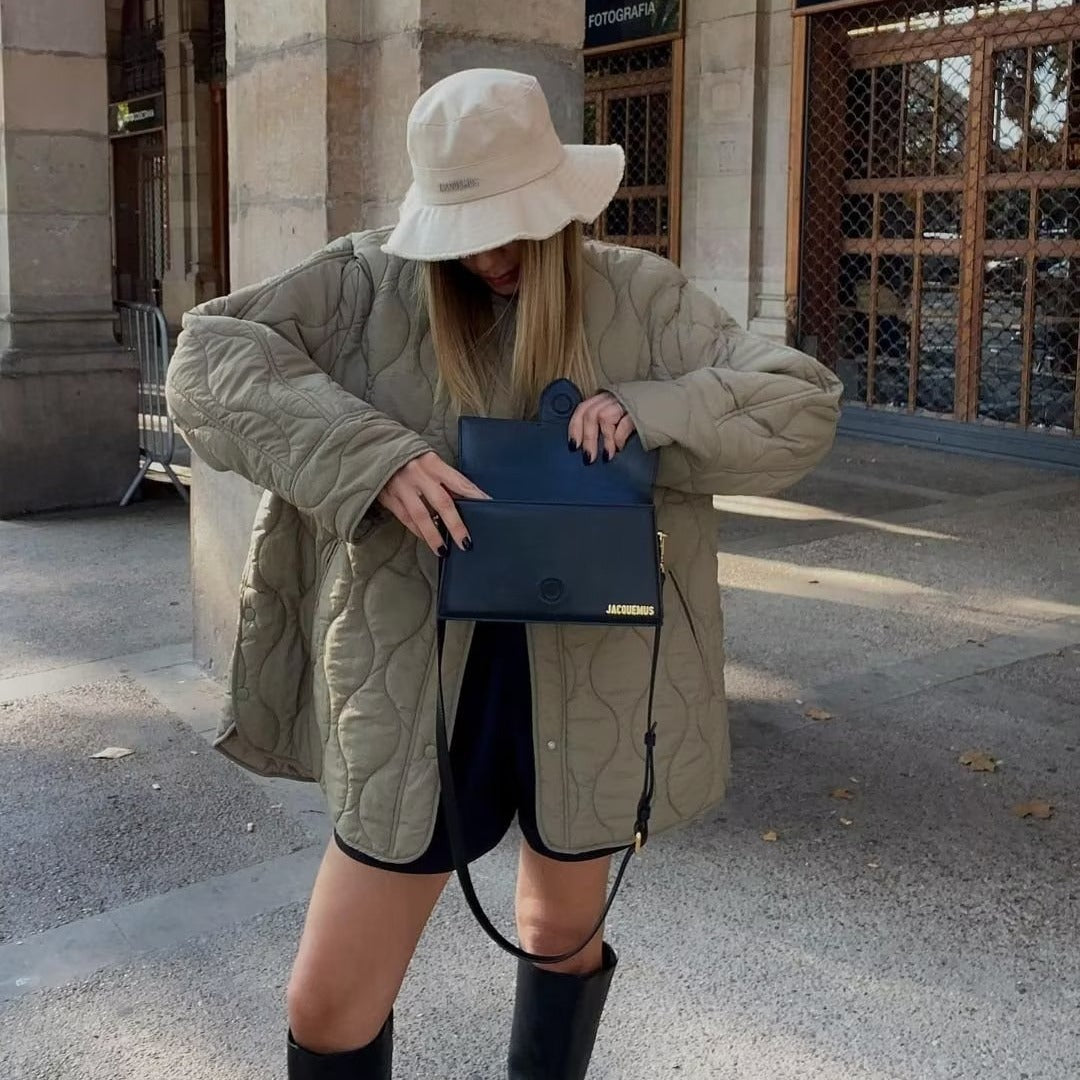 Women's Casual Rhombus Round Neck Quilted Loose Jackets