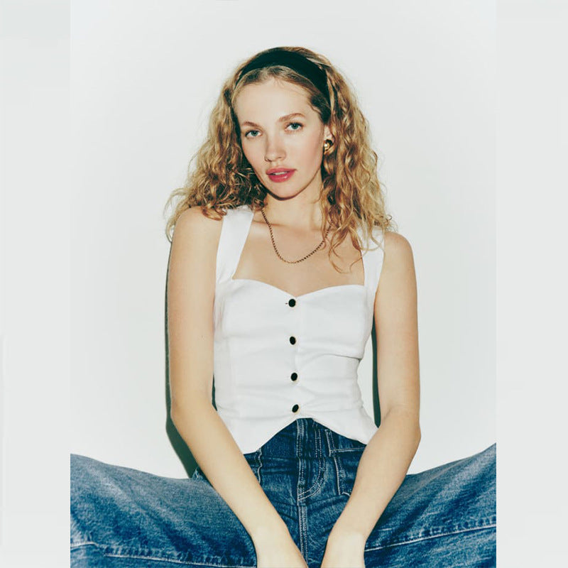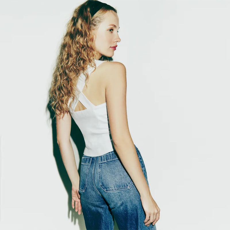 Women's Color Square Collar Linen Single-breasted Slim Vests