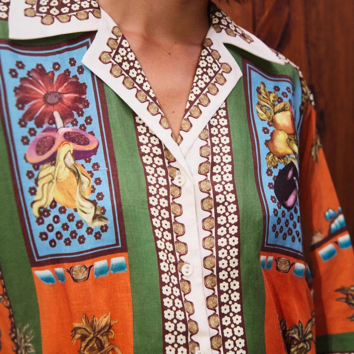 Women's Cotton Linen Printed Long Collar Dress Dresses