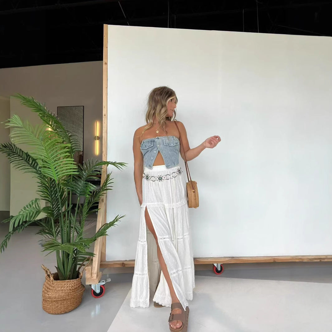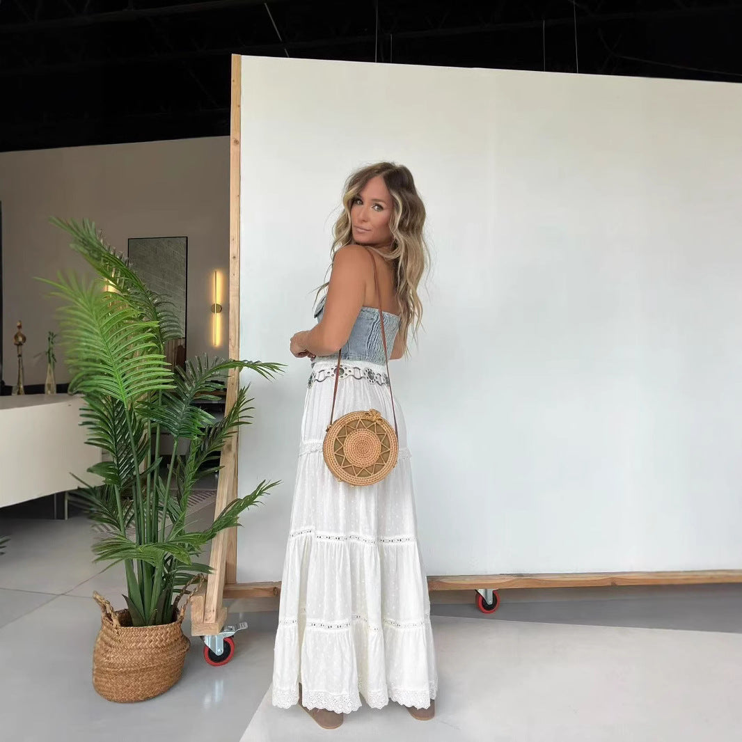 Women's Design Lace Stitching Elastic Waist Expansion Skirts