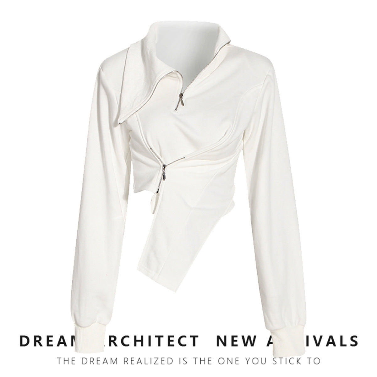 Women's Design Oblique Zipper Turtleneck Irregular Hem Shorts