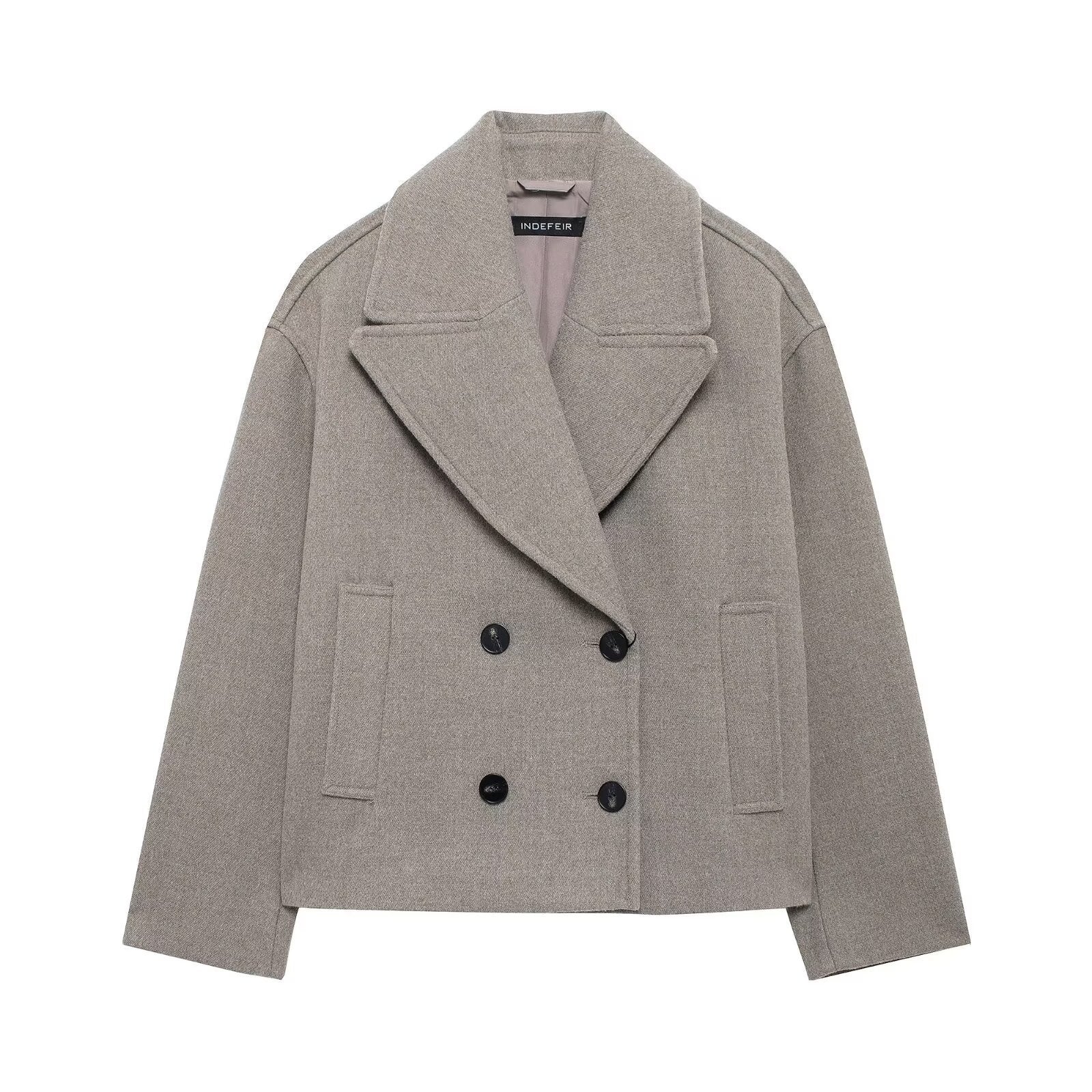 Women's Double Breasted Wool Blended Row Ornament Coats