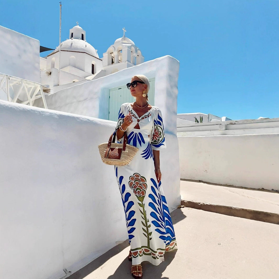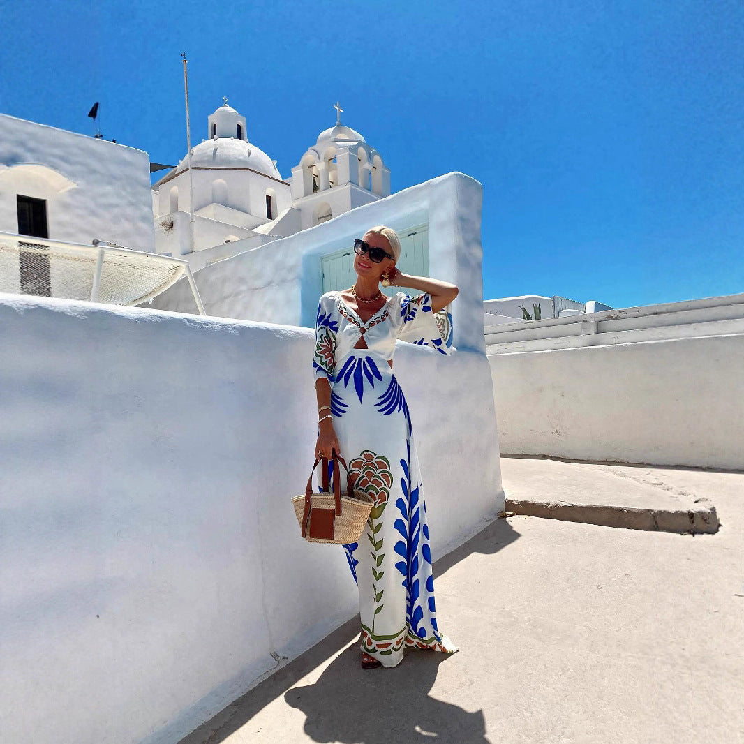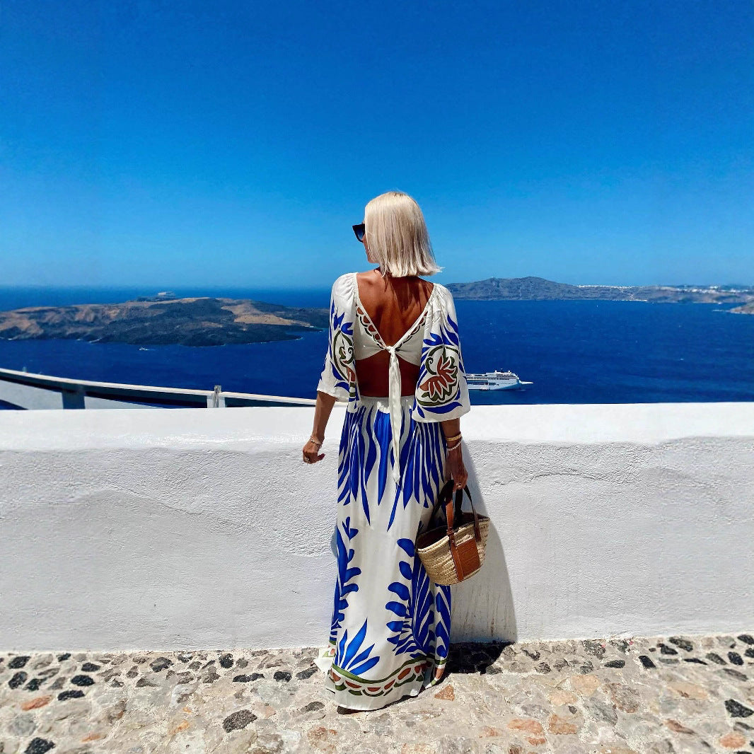 Women's Dress Positioning Printed Backless Vacation Style Dresses