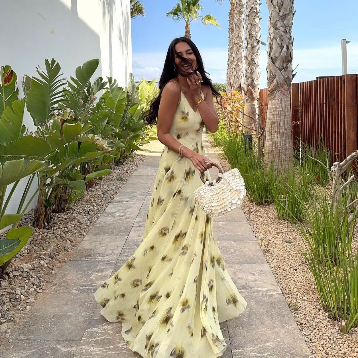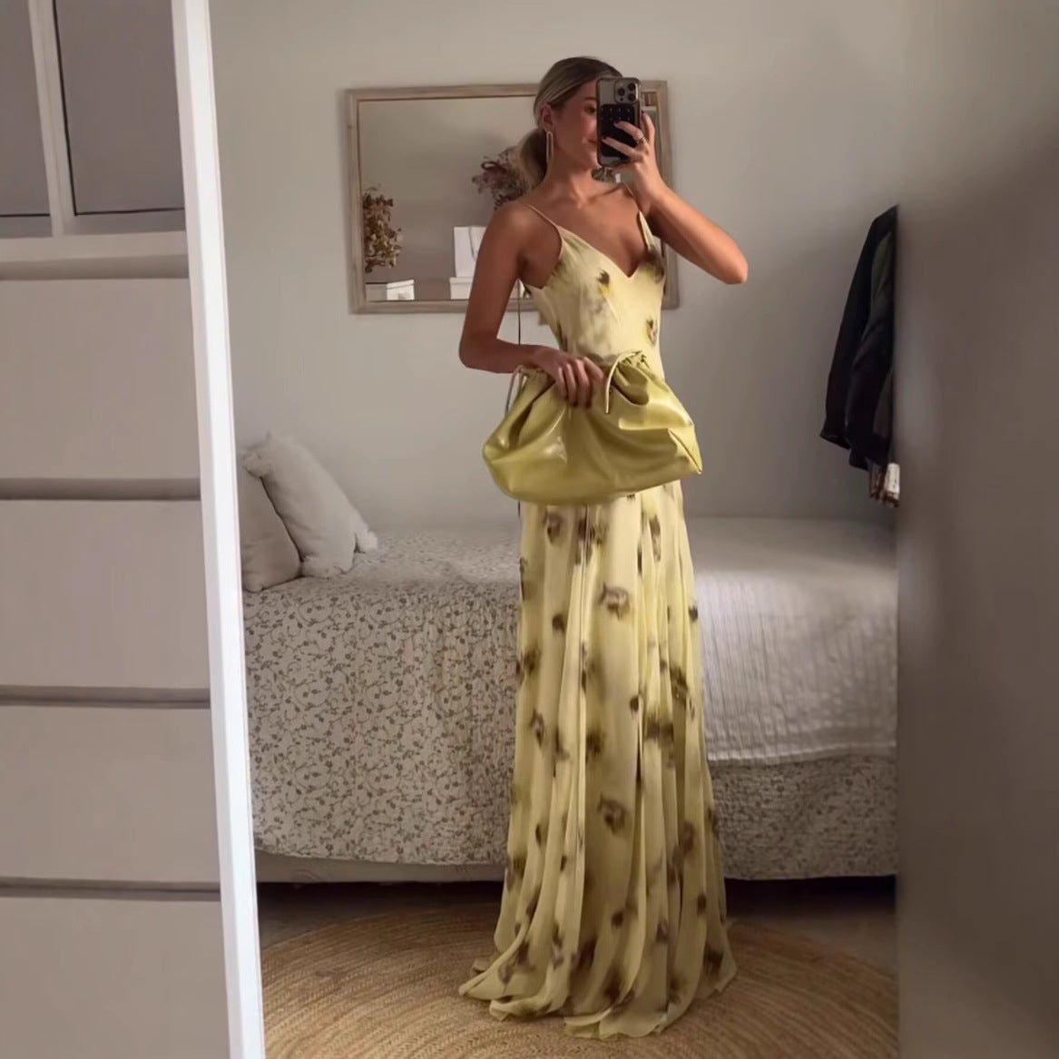 Women's Early Spring Printed Large Swing Strap Dresses