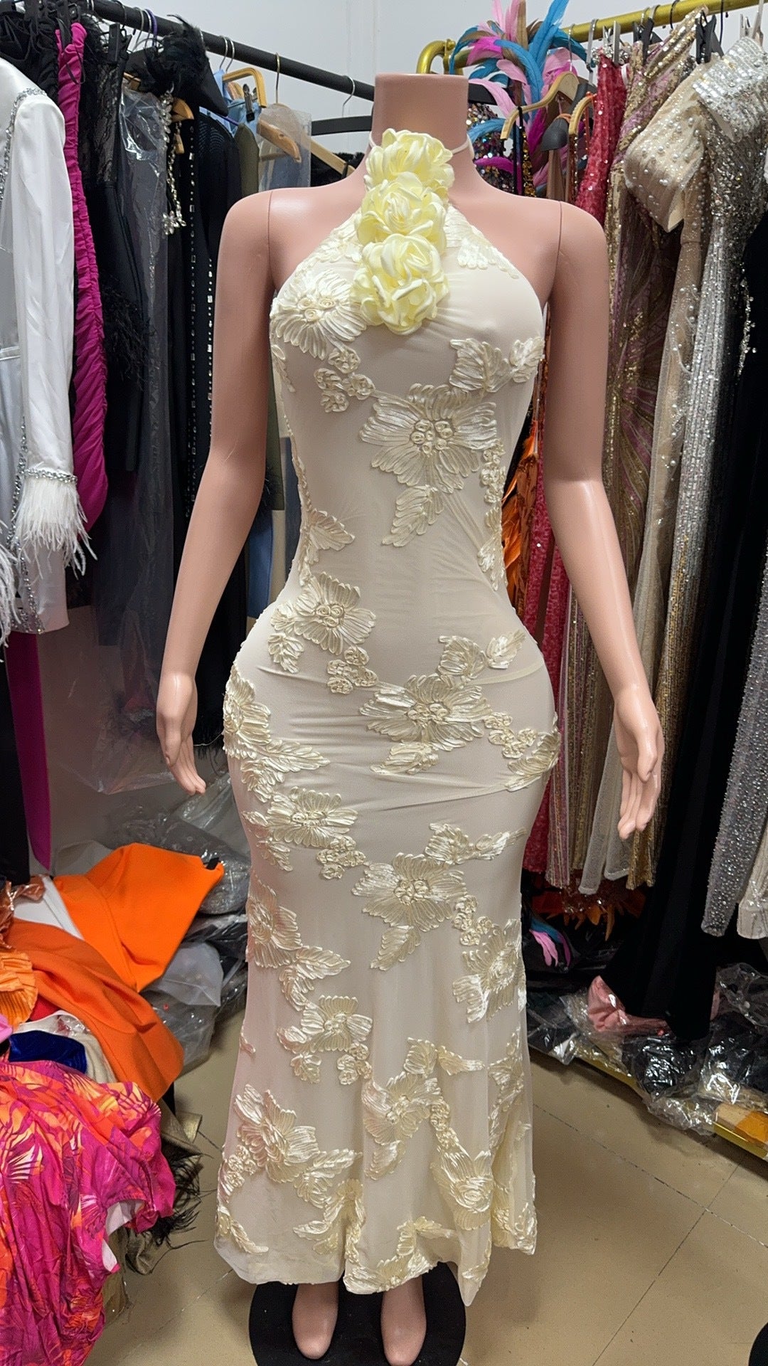 Women's Elegant Halter Dress Flower Decoration Bronzing Dresses