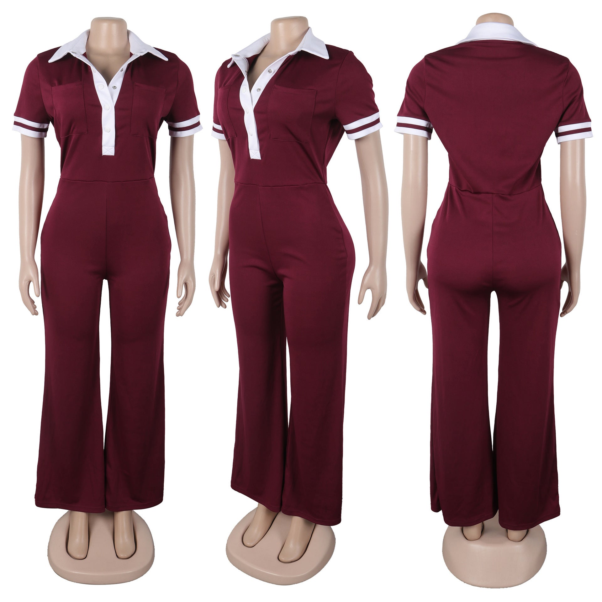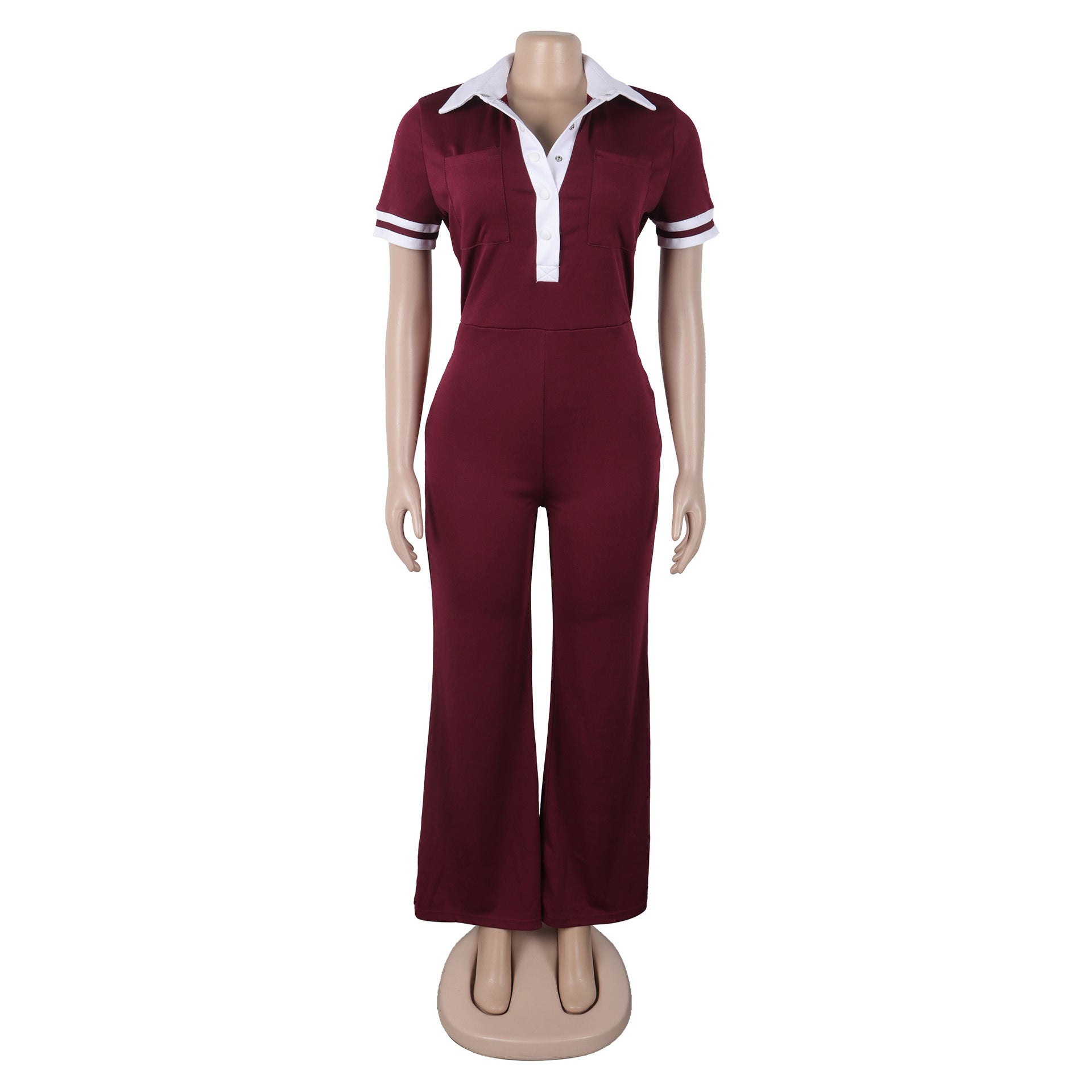 Women's Elegant Stretch Contrast Color Lapels Short-sleeved Jumpsuits
