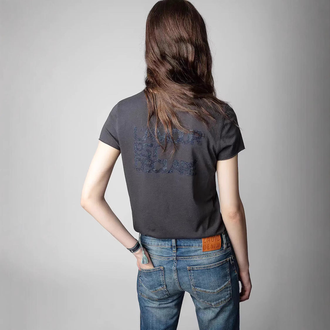 Women's English Letters Discharge Print Printed Rhinestones Blouses