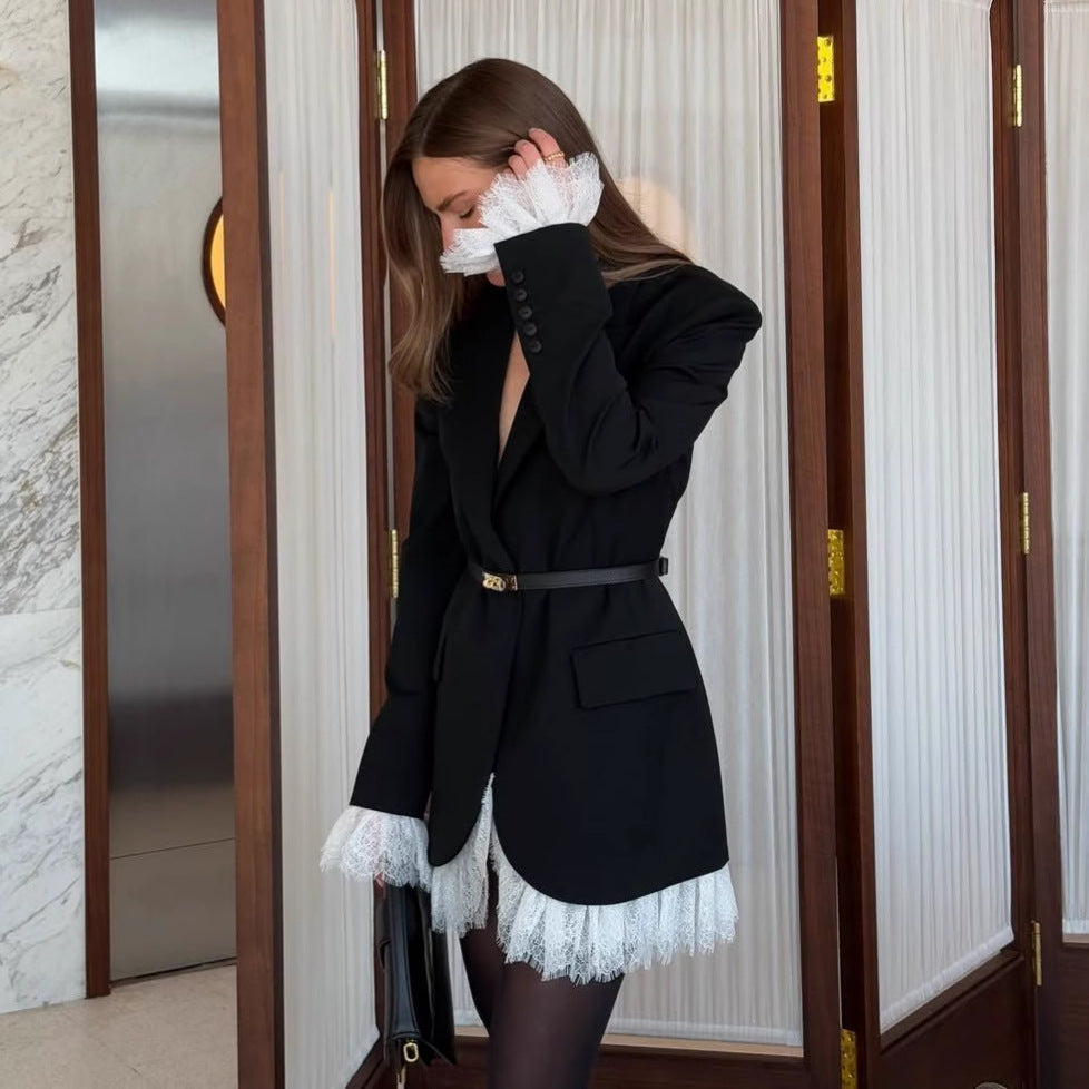 Women's Fashion Autumn Long Sleeve Lace Stitching Dresses