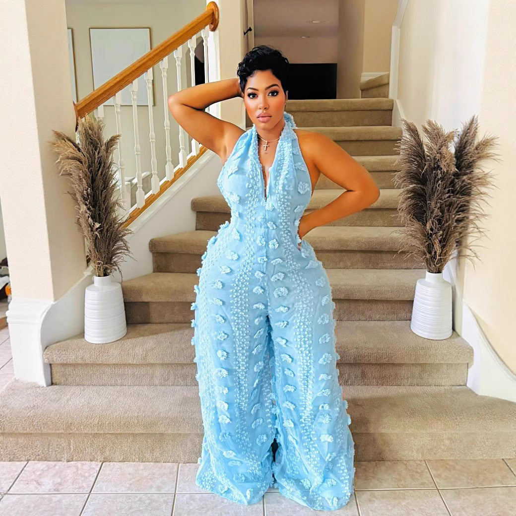 Women's Fashion Casual Halter Large Swing Ribbon Jumpsuits