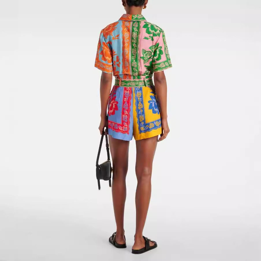 Women's Fashion Casual Linen Contrast Color Jumpsuits