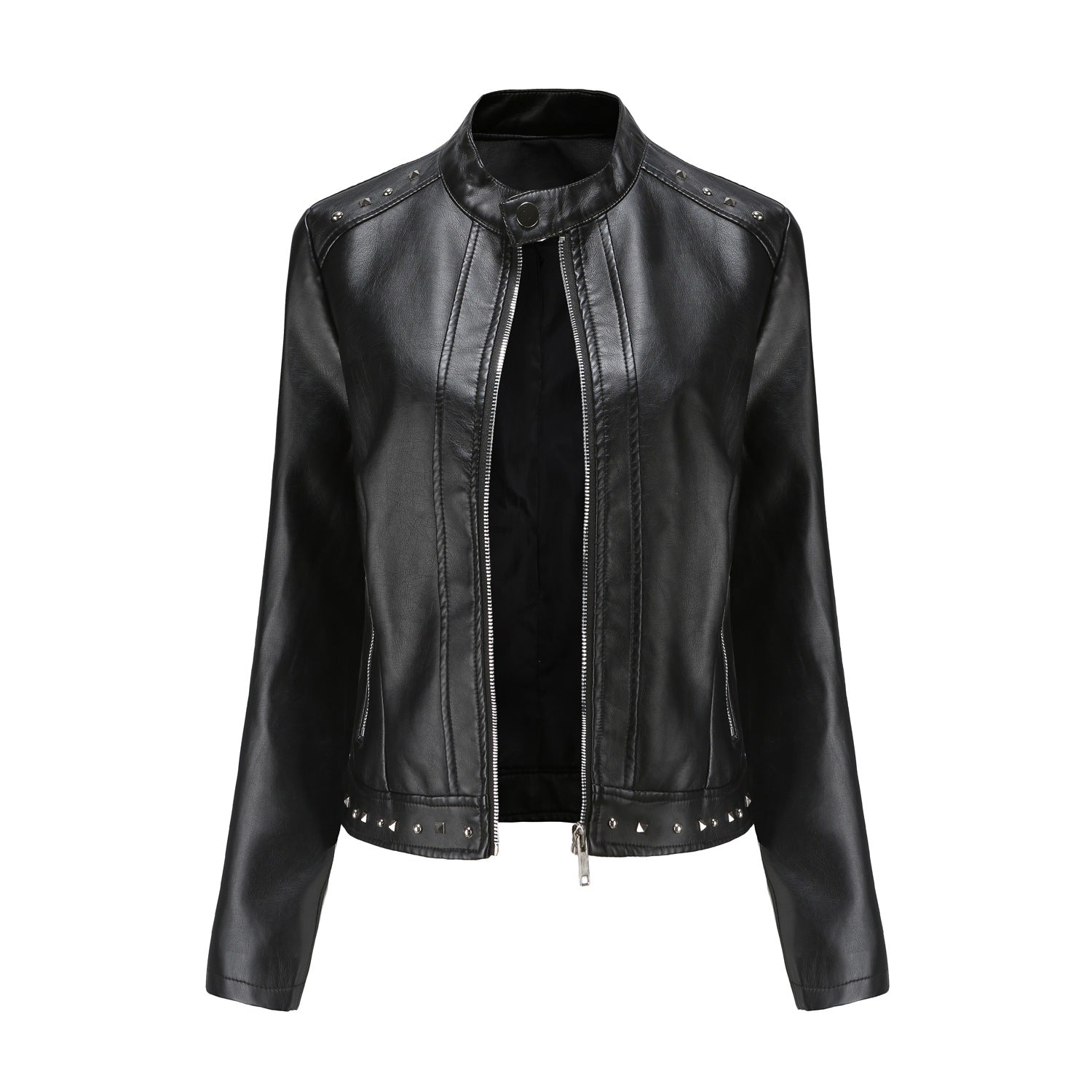 Women's Fashion Leather With Stand Collar Solid Jackets